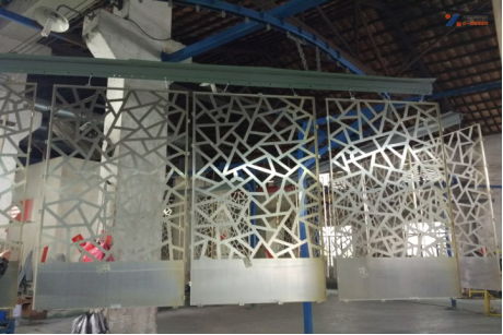 這個防腐處理工藝,在鉻化處理之后,在鋁單板表面上噴涂上化學性質非常穩定的氟碳油漆,這進一步增強了氟碳鋁單板防護力。而氟碳油漆由于特殊的分子結構,在遇到強酸、霧等各種腐蝕物的時候,不會出現被腐蝕的現象,面臨高溫、日曬、風吹、雨淋等惡劣天氣氟碳鋁單板也依然鮮艷如初,穩如泰山。因此它被廣泛運用在室外的建筑裝飾中。