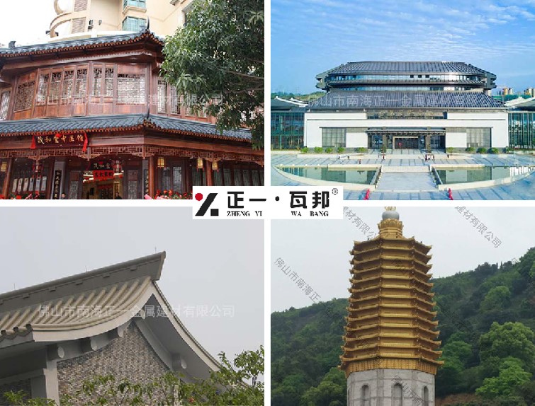 以廣東佛山正一金屬建材為代表的鋁瓦產品,憑借吸音降噪、防火阻燃、防腐耐候、保溫隔熱、便捷打理、安裝便捷、抗壓抗裂、防風防震等八大優勢,被廣泛應用于學校、展館、商業中心、酒店、醫院、別墅、小區、寺廟等場所的屋面裝飾,不斷推動著我國千年屋面瓦文化的傳承、創新和發展,并成功打造了眾多優秀的金屬鋁瓦工程案例。